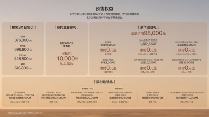 3月16日,一张37.68万元起的预售价目表,如合并枚进入湖面的巨石,在高端汽车商场中激起千层波涛。极氪认真推出全新高性能大五座旗舰SUV——极氪8X,这不仅是一款新车的预售,更是一场态度顽强的价值讲和。在中国品牌借电动化与智能化波涛,在商场份额上对传统豪华巨头造成合围之后,极氪8X的就业,就所以硬核工夫矩阵直插BBA的性能土产货,在一经驴年马月的高性能豪华SUV领域,开发起属于中国汽车的一面簇新旌旗。它的问世,象征着中国高端汽车竞争已从“电动化渗入”迈入“全维性能特出”的新阶段,一个由中国品牌界说高性能圭臬的时间正拉开帷幕。