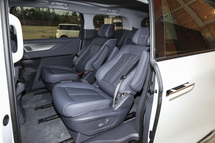 说到GL8,就不得不提它的座椅。可以说,座椅是这台车的灵魂所在。我们试驾的这款陆尊的PHEV版块,第二排配备的是航空级沉静座椅。材质上袭取的是高级Nappa真皮(陆尚用的是仿皮质),属于触手生温的那种。填充物的软硬进程调校得相当到位,刚坐上去嗅觉优柔包裹,但万古候乘坐又能提供足够的因循,不会让你合计陷进去出不来;坐垫的长度能够完全承托住大腿,这关于资料旅行来说照旧很贫穷的。