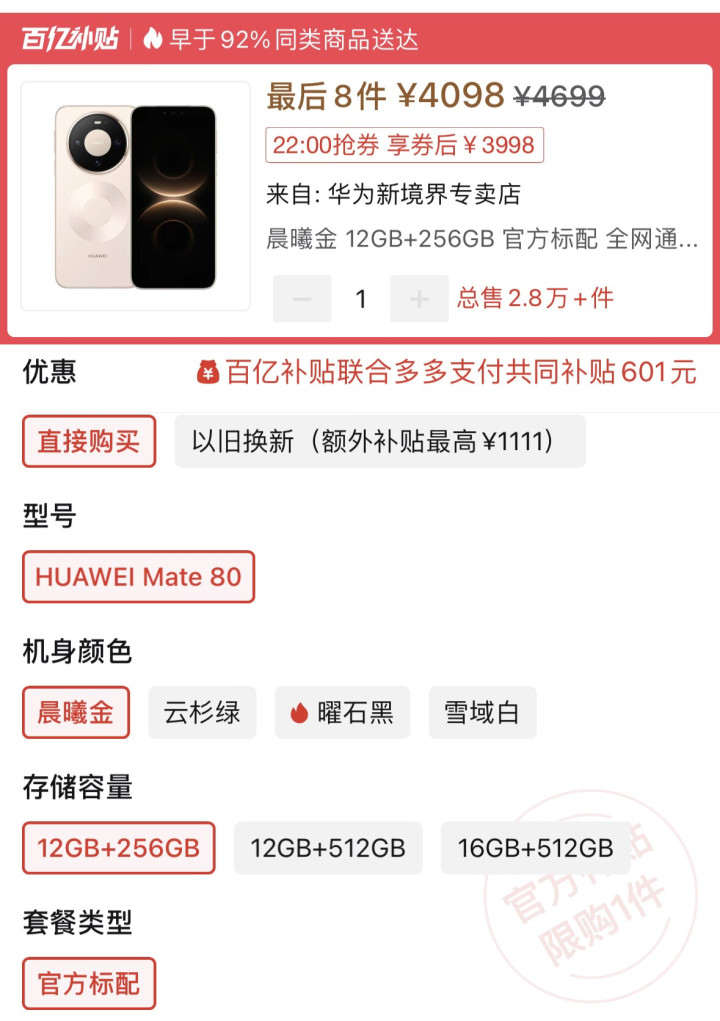 概述来看BG真人(BigGaming)官方网站,华为Mate 80并不是一味追求极致参数的“性能怪兽”,而是一款委果驻扎体验平衡的旗舰之作!它在性能、屏幕、影像、续航与耐用性之间找到了完好的交融点,用塌实的实力诠释注解了何为“可靠的高端体验”!要是你正在寻找一款既能称心平日使用、又能兼顾拍摄与品性感的万能旗舰,就华为这款旗舰家具完满会是很好的遴荐,就在价钱层面亦然较为有丹心了,参考到如今电商平台中的价钱,还是是跌到了4098元的价钱了。