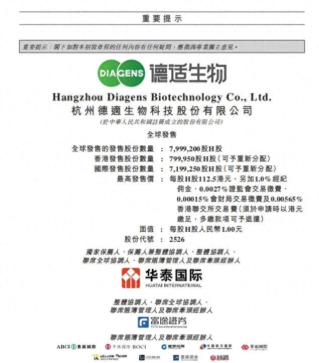 3月20日,杭州德适生物科技股份有限公司(以下简称“德适生物”)认真运转港股IPO招股,计较将于3月30日在港交所主板挂牌上市。这次IPO拟刊行7,999,200股H股,发售价区间为每股95.6至112.5港元。其中香港公拓荒售占10%,国际发售占90%,至多可通过本次IPO召募约9亿港元。