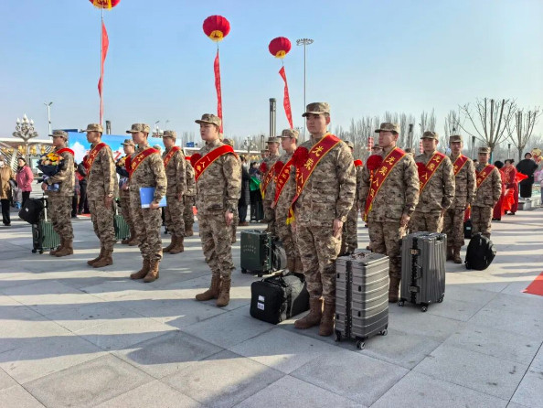 3月16日上昼,巴彦淖尔市2026年上半年新兵投军欢送活动举行,退役军东说念主代表、新兵家属及社会各界人人等为行将奔赴军营的后生壮行送别。